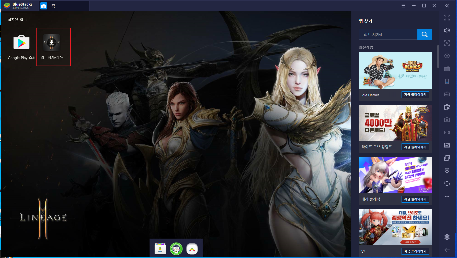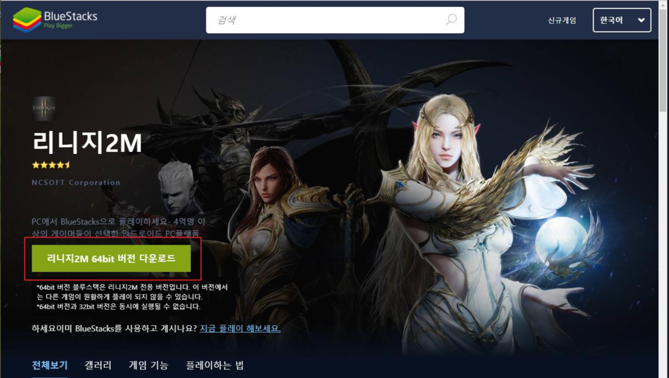 다운로드 링크는 https://www.bluestacks.com/ko/apps/role-playing/lineage-2m-on-pc.html