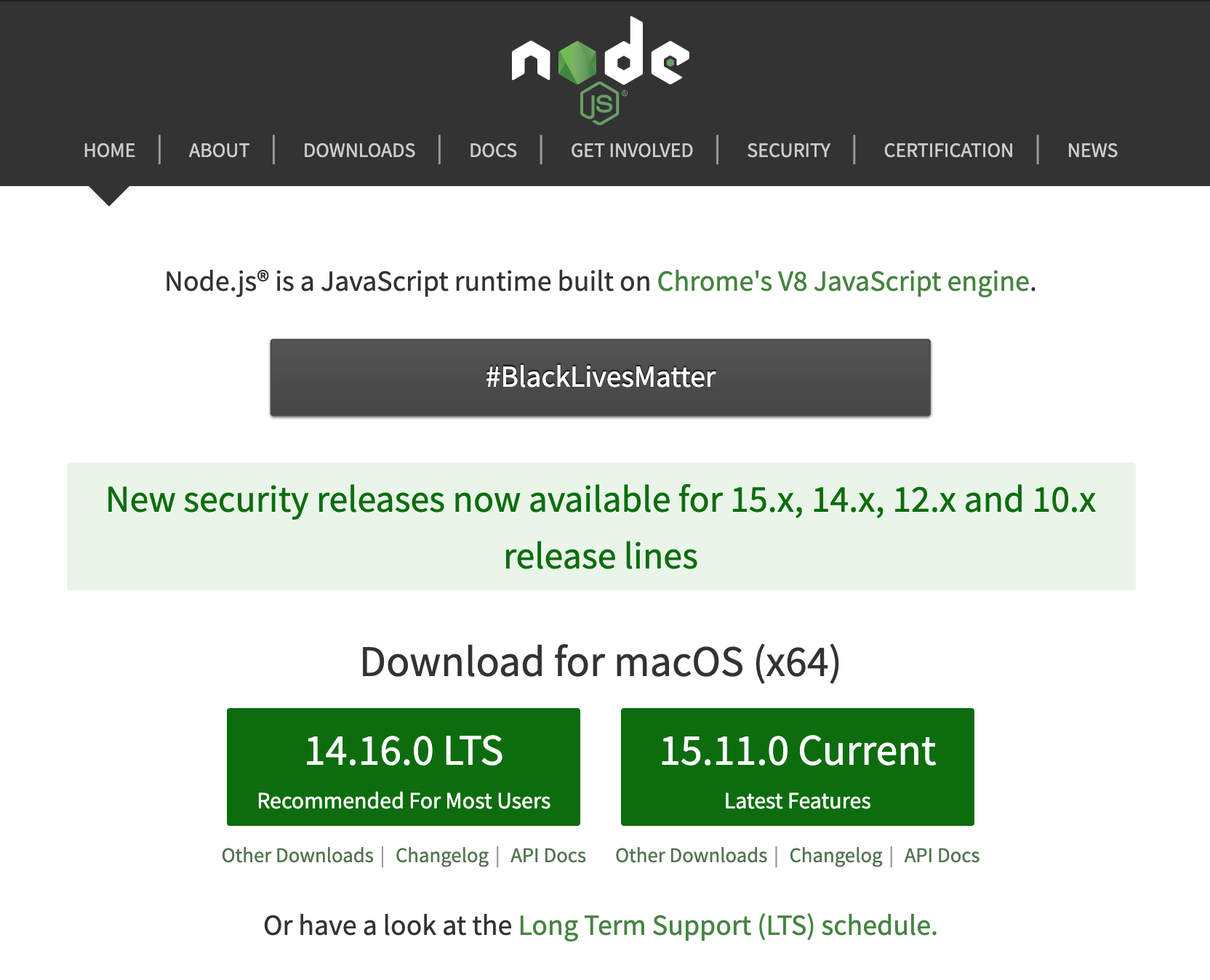 node.js 공식 웹사이트로 이동