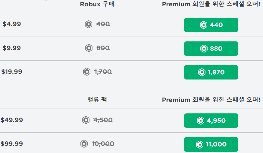 프리미엄인 상태에서는 추가 로벅스를 구매하는 방식으로 10% 할인이다.