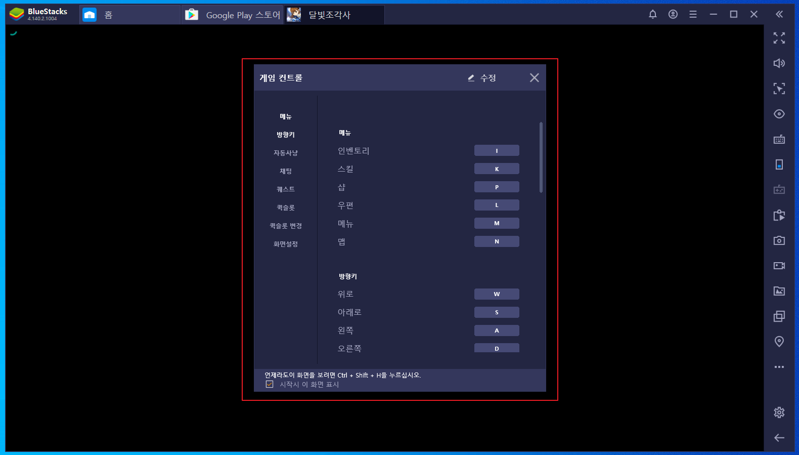 이 창은 블루스택에서 지원하는 게임 컨트롤인 것 같다.