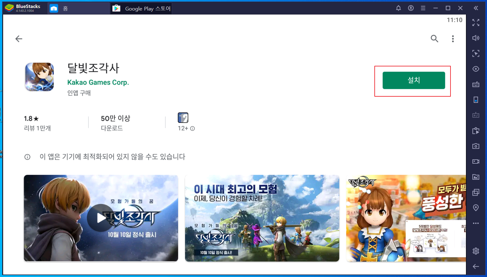 1번으로 올라와 있는 달빛조각사를 해보자.