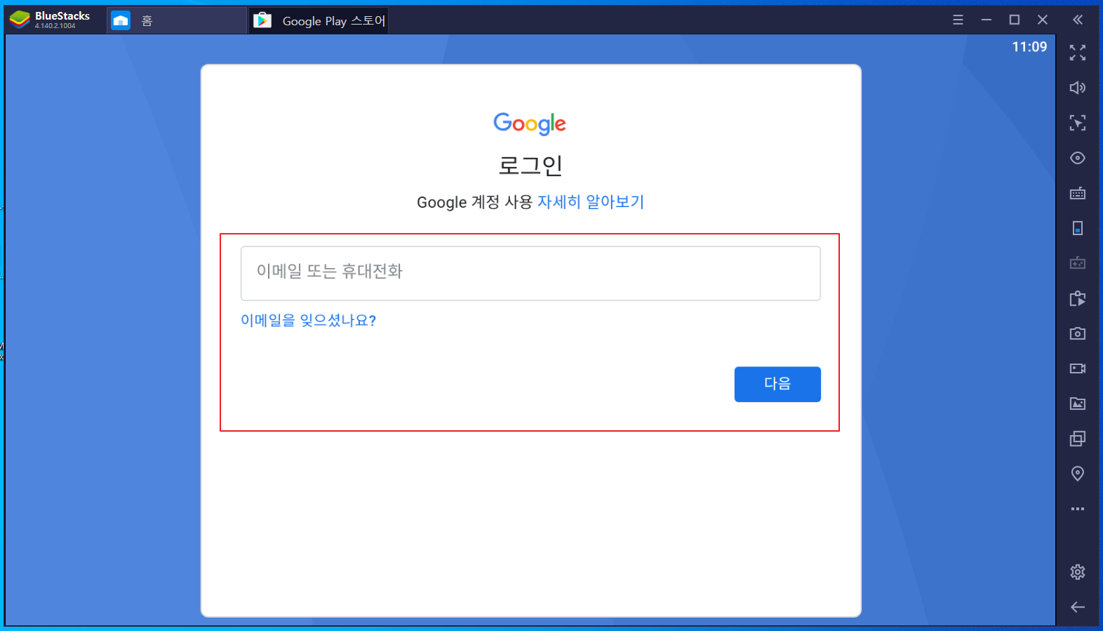 계정 없이는 google play 스토어 게임을 할 수 없다.