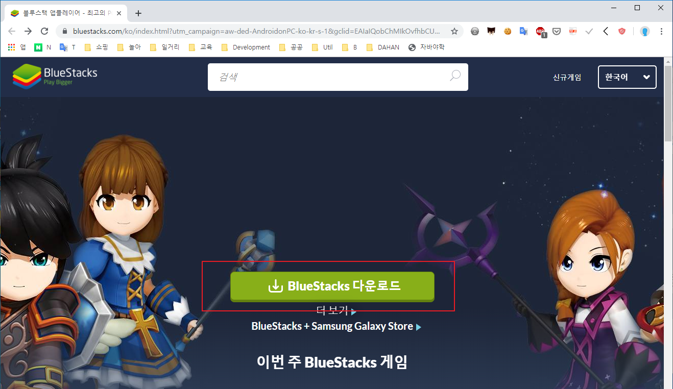 블루스택 사이트에 접속해서 다운로드를 한다.