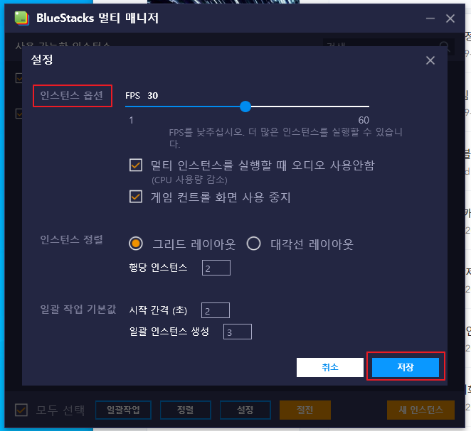 멀티 인스턴스를 실행할 때 오디오 사용 안 함 : 체크