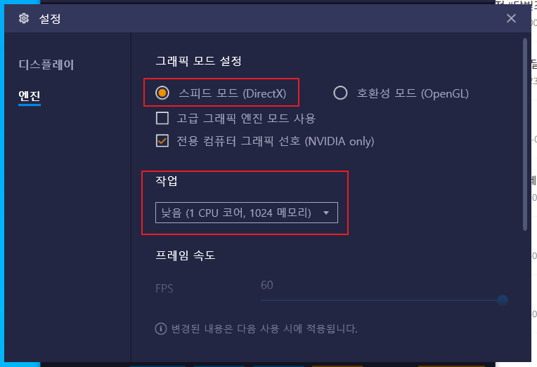 그래픽 모드 설정 : 스피드 모드